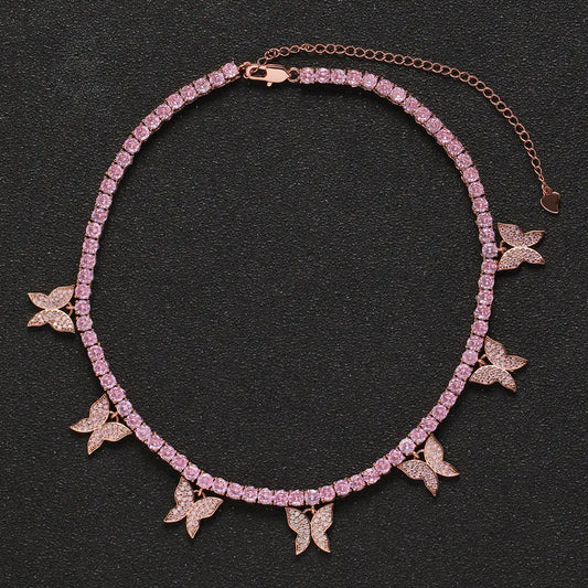 Butterfly effect pink silver tennis choker
